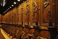 Under Abbot Peter Rych (1320–28) the cloister was decorated with tracery windows and the gothic church choir was decorated with six tracery and stained glass windows. Under Abbot Jean Philibert (1472–88) the extensive late gothic choir stalls were added. In 1418 Pope Martin V, during his trip through Switzerland to the Council of Constance, granted abbot Peter Affry (1404–49) and his successors the pontifical vestments.