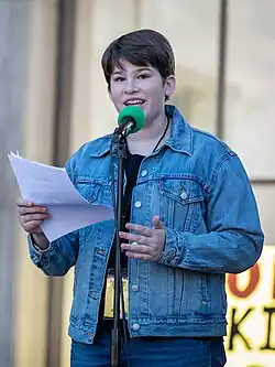 Haven Coleman (born March 29, 2006)[2] is an American climate and environmental activist.[3] She is the co-founder and co-executive director of U.S. Youth Climate Strike with youth activists Alexandria Villaseñor and Isra Hirsi.[4][5] an organization dedicated to raising awareness and catalyzing change concerning the climate crisis.[6]