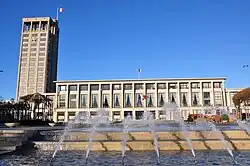 The city was devastated during the Battle of Normandy when 5,000 people were killed and 12,000 homes were totally destroyed before its capture in Operation Astonia.[15] Between 1945 and the 1960s, the center was extensively rebuilt to designs of a modernist style by Auguste Perret.[16]
