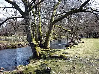 Below Burnbanks near the Haweswater Dam it is crossed by Naddle Old Bridge (a disused Grade II listed 18th-century road bridge)[1] and a little further downstream (at NY515161) by Park Bridge, a packhorse bridge.[2] Between these bridges the stream is followed by the Coast to Coast Walk.[3]