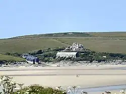 The ebb tide uncovers a wide sandy beach which, at low water, extends across the estuary mouth towards Trebetherick Point. But at high water, the beach is submerged and the sand bank is the notorious Doom Bar which presents a hazard to shipping.