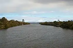 The tidal influence is 5 kilometres (3 mi) upstream from where the river flows into the inlet. The Hay River flows all year and the water quality is marginally saline to brackish. It is estimated that 70% of the catchment area has been cleared for agricultural purposes but 42% of the riparian zone was pristine.