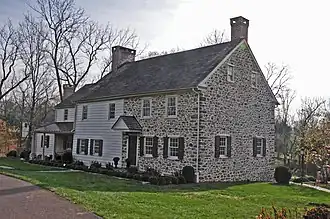 This historic structure was built by Quaker minister John Hayhurst in 1742. Hayhurst was a member of the Wrightstown Friends Meeting. General John Sullivan stayed at the farm during the American Revolution, beginning on December 20–25, 1776, before crossing the Delaware River and leading troops in the Battle of Trenton on the morning of December 26.[2]