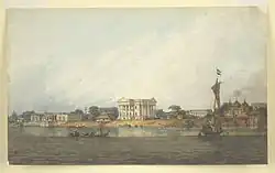 ![]() A c. 1814 painting by William Prinsep of the Nizamat Fort area, showing the old and small Nizamat Fort, from the British Library | |