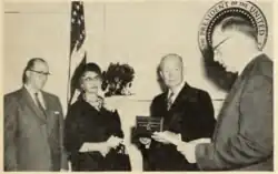 In 1959, Stiebeling received the President's Award for Distinguished Federal Civilian Service from President Eisenhower.[6][5][17] Eisenhower commended her for "her lasting contributions to the science of human nutrition and through this to the health of the American people."[18] Stiebeling was the first woman to receive the award.[7] In 1963, Stiebeling retired from the U. S. Department of Agriculture.[12][10]