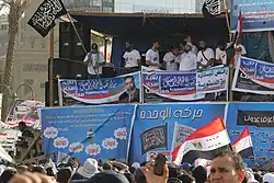 Abu Ismail ran under the slogan "we will live in dignity," and appealed to voters of the Muslim Brotherhood and the Salafist al-Nour Party.[9] By April, he had become one of the frontrunners, and enjoyed notable displays of popular support.[10][11][12]