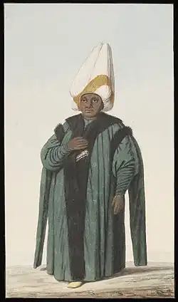 6. ^ Orientalnej, Uniwersytet Jagielloński. Instytut Filologii (2005). Turks and non-Turks: studies on the history of linguistic and cultural contacts. Institute of Oriental Philology Jagiellonian University. p. 524. ISBN 978-83-7188-891-5. The head of them had the title of hazinedar usta. Only hazinedar usta could sit near the Sultan and the other ones, the second hazinedar and the third hazinedar, served him.