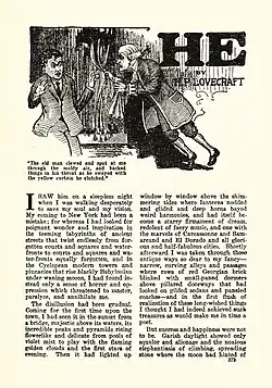 "He" is a short story by American horror writer H. P. Lovecraft. Written August 1925, it was first published in Weird Tales, September 1926.[2]