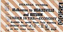 Melbourne–Healesville rail ticket, 1978