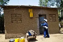 The Carter Center conducted research in Ethiopia in the mid-2000s where they analyzed how malaria affects the Ethiopian population among various factors.[13] The factors considered included living situations and housing conditions, as well as Ethiopian age and gender demographics.[13] This study found that one's socio-economic position directly correlates to their chance of contracting malaria.[13] Researchers concluded that a key method of reducing the prevalence of malaria in Ethiopia is by improving the quality of housing and living conditions.[13] They found an effective disease countermeasure to be the use of anti-malarial spray, as households that had been sprayed had lower rates of infection.[13] This research also concluded that while the poorest households are more likely to face these poor conditions, they are also the ones less likely to take steps towards malaria prevention, thus continuing transmission of the disease.[13]