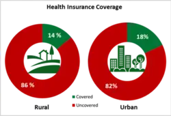 Policies are available that offer both individual and family cover. Out of this 3.9%, health insurance accounts for 5-10% of expenditure, employers account for around 9% while personal expenditure amounts to an astounding 82%.[2] In the year 2016, the NSSO released the report "Key Indicators of Social Consumption in India: Health" based on its 71st round of surveys. The survey carried out in the year 2014 found out that, more than 80% of Indians are not covered under any health insurance plan, and only 18% (government funded 12%) of the urban population and 14% (government funded 13%) of the rural population was covered under any form of health insurance.[3]