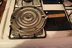 A heat diffuser, flame tamer, or simmering plate (UK) is a cooking utensil that is placed on top of a burner on a cooktop to separate the cooking pot or pan from the direct source of heat, making the heat more gentle and even.[1]
