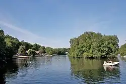 The 12-acre (4.9 ha) boating lake was constructed between 1908 and 1912 by previously unemployed men using only shovels and hand-pulled trucks. The lake, which is overlooked by the Lakeside Cafe, has three islands and is home to large numbers of ornamental birds and wildfowl including geese, ducks, swans and fantail doves. There are rowing boats for hire during the summer months. The lake is noted for its excellent carp fishing and is also stocked with roach, rudd, bream, tench and chub.[32] Fishing rights to all the waters in the park are held by the King William IV Angling Society.[32]