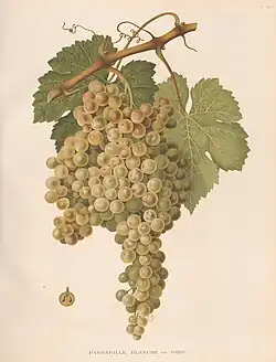 It is an ancient variety found to have originated as a table grape in North Africa as Gibi. It is the parent variety of a large number of grapes grown in the Iberian Peninsula and the wider Mediterranean. It has paired with Alfrocheiro to produce the rare Portuguese varieties Trincadeira das pratas, Tinta grossa, Castelão branco, and Malvasia fina, as well as the Spanish Allarén. With Muscat of Alexandria it has produced Moscatel nunes/Nuno gomes in Portugal and Moscatel de Angüés in Spain. In Spain, it has a parent relationship with some very widely grown varieties: Airén, Cayetana, Viura, Xarel·lo, and Pedro Ximénez. In total, around 60 offspring varieties have been identified. Its sparse bunches are an attribute that can be seen some in children varieties such as Pedro Ximénez and Xarello. It produces solely female flowers, unlike the majority of self-pollinating vinifera varieties grown for wine today.[1][2]