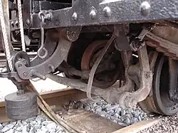 The chain brake, an early British railway brake, was similar to the Heberlein brake but used a chain, instead of a cable. An example was the Clark and Webb Chain Brake, developed by John Clark in the 1840s and improved upon by Francis William Webb in 1875.[1] It was used by the London and North Western Railway[2] from 1877,[1] with some remaining in service into the 1890s.[3] Early versions were non-automatic and would not stop the train if a coupling broke, thus not fulfilling their promise of eliminating the need for a brake van and guard.