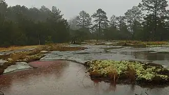 Heggie's Rock occupies approximately 130 acres (53 hectares) granite outcropping in Columbia County, Georgia, approximately 20 miles (32 km) from Augusta, Georgia.[1] The outcropping rises approximately 70 feet (21 m) above the surrounding area, which is bordered by two streams, Benton Branch and Little Kiokee Creek, the latter of which flows into the Savannah River approximately 8 miles (13 km) downstream from the rock.[1] In 1980, the area was deemed a National Natural Landmark.[1] In 1983, The Nature Conservancy purchased 101 acres (41 hectares) of the rock, creating Heggie's Rock Preserve.[2][3] In 1998, scientists at Heggie's Rock described a new genus and species of copepod found only at the rock.[4]