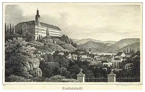 Heidecksburg is a Baroque palace in Rudolstadt, Thuringia, Germany. The palace served as the residence of the princes to Schwarzburg-Rudolstadt. It is located prominently approximately 60 m above the old town. After a fire in 1735 and its reconstruction, it has remained intact, including during World War II.