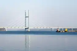 Heinola is largely situated between two lakes, Ruotsalainen and Konnivesi. A waterway connecting the lakes crosses the town and is, along with an esker also crossing the town, a characterising geographical feature of Heinola. A motorway (Finnish national road 4/E75) connects Heinola to Lahti (distance 35 km or 22 mi) and Helsinki (distance 138 km or 86 mi); it also acrosses Lake Ruotsalainen on the Tähtiniemi Bridge in the northern part of town. Heinola is also southern head of the Finnish national road 5, which goes over 900 kilometres to the north through the cities Kuopio and Kajaani to Sodankylä.