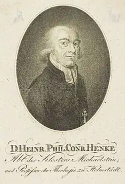 Heinrich Philipp Konrad Henke (3 July 1752 – 2 May 1809), German theologian, best known as a writer on church history, was born at Hehlen, Brunswick-Lüneburg.[1] He was the father of historian Ernst Ludwig Theodor Henke (1804–1872).