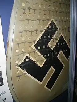 This and the ♠ (Ace of spades) indicates those aerial victories which made Schnaufer an ace-in-a-day, a term which designates a fighter pilot who has shot down five or more airplanes in a single day.