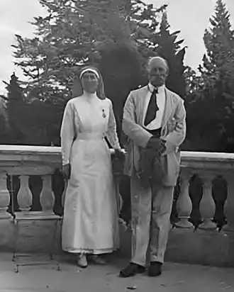 After the outbreak of the First World War in 1914, Percy Cochrane and others rented the Imperial Hotel in Menton and set up a military hospital there. Helen Cochrane worked there as a nurse and received the Médaille de la Reconnaissance française in recognition of her services. After Italy entered the war on the side of the Triple Entente in 1915, he and his wife converted the Villa Massà in Sarzana into a modern military hospital with operating rooms. Helen Cochrane hired English nurses and provided drinking water and heating for the building. The hospital's operations were overseen by Helen Cochrane as director and Percy Cochrane as administrator.