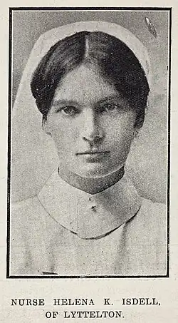 Isdell was born in Greymouth, on the West Coast of New Zealand, on 30 November 1888.[2] Her parents were Josephine Margaret and James Isdell.[3] After completing her training, Isdell was the matron at Kumara Hospital on the West Coast. However, some sources also list her home as Napier or Lyttelton.[4][5]