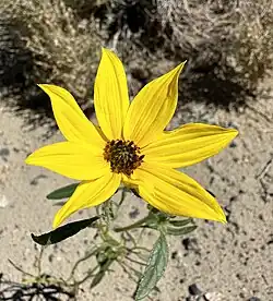 Helianthus deserticola, the desert sunflower, is a plant species native to Arizona, Nevada and Utah.[2] It grows in dry, sun-lit locations at elevations of 400–1,500 m (1,300–4,900 ft).[3]