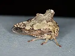 Heliria cristata is found in the eastern United States, but its range can reach as far as Texas[2] to Ontario, Canada.[1] It feeds primarily on the black oak (Quercus velutina) but it has been spotted feeding on other kinds of oak.