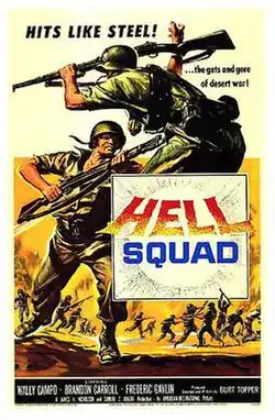 Hell Squad is a 1958 American World War II film, produced, written and directed by Burt Topper. It was his very first film.[2] AIP originally released the film as a double feature with Tank Battalion.