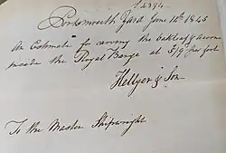 | HMS Hibernia | 1845 | Yes | Yes | Hellyer & Son submitted the design for HMS Hibernia's replacement figurehead, the original most likely carved by resident carvers at Devonport. The carvers were allowed £47 for the work (approx £4,848.59 today).[33] |