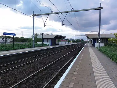 Helmond Brouwhuis is a railway station in Brouwhuis, a housing area of Helmond, Netherlands. The station opened in 1987 and is on the Venlo–Eindhoven railway. The station has 2 platforms. Train services are operated by Nederlandse Spoorwegen.