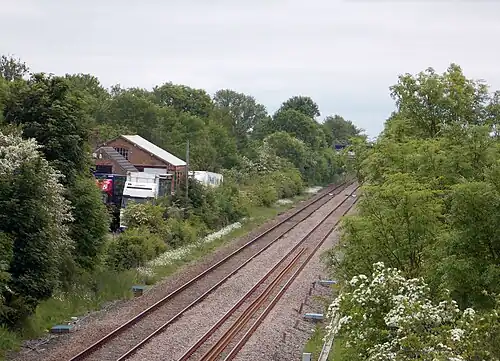 ![]() Site of Helpringham railway station. The largest building is the former station's goods shed | |||||
