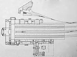 The Helsinki railway station was originally built outside the city centre. This left enough space to build a railway machinery yard and a locomotive hangar next to the station. However, they later became encompassed by the growing city and so the locomotive hangar was gradually moved to the Pasila machinery yard since 1899.[30]: 13  In 1923 the number of platforms was increased from six to eight by narrowing the platforms and removing the separate baggage platforms. In 1925 two new tracks were built between Helsinki Central and Pasila stations for service traffic. In the 1890s the Helsinki harbour rail was built from the Helsinki railway station through southern Helsinki to Katajanokka. Its use later decreased so much that it started to be gradually dismantled since the 1970s. It was finally completely dismantled in 2009 after the Vuosaari Harbour was completed.[10]: 16