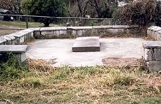 The monument was reported to be in a deteriorated condition as at 20 June 2000. Sandstone blocks have been chipped, broken and dislodged. The surrounding land and parts of the perimeter wall are overgrown with vegetation.[1]