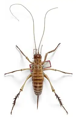- ^ Field, L. H.; Bigelow, R. S. (2001). Field, L. H. (ed.). Morphometric analysis of Hemideina spp. in New Zealand. Chapter 9 in [Ed. L.H. Field] The biology of Wetas, King Crickets and their allies. CABI Publishing. doi:10.1079/9780851994086.0000. ISBN 978-0-85199-408-6.