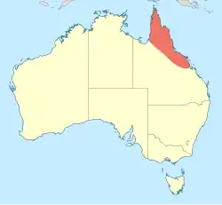 Hemigomphus comitatus has been recorded from near Mackay, Queensland to northern regions of Cape York Peninsula, usually along the coastal strip and nearby mountain ranges.[7]