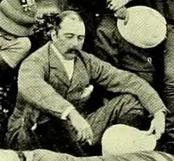 On a brief return to England from Texas, on 28 May 1884, Finch attended the Epsom Derby and broke a leg on his railway journey back to London Bridge.[44] Accounts as to exactly what happened vary: St Louis Post Dispatch reported that Finch had assaulted a railway porter by striking the porter on the head with his cane when asked to show his ticket, the altercation leading to a fall and Finch's leg being broken in two places.[45] The Yorkshire Post gave an account from London Bridge railway station officials: that a man travelling on the 11.40 p.m. train from Epsom had refused to show his ticket, and had instead attempted twice to strike a Ticket Inspector on the head; the Inspector had warded off the passenger's blows and pushed him down, after which the injured man was assisted to a Cab and had given the name 'Lord Aylesford' which they had thought at the time was an assumed name.[46] Alternatively, Finch had perhaps fallen asleep on the train and his unconscious frame had blocked a female passenger's exit from their carriage: in that version of events Finch met his accident while a porter tried to help the woman get out of the train.[47][48] Finch contended that he had been assaulted by a railway official, and through his solicitor appealed for witnesses.[47][49] Finch was attended by Dr Alfred Cooper while he recovered.[44]