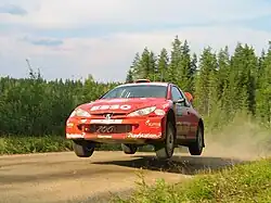 Solberg driving a Peugeot 206 WRC at the 2004 Rally Finland.