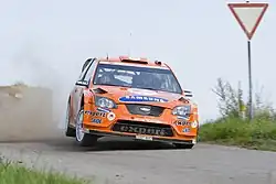 Solberg retained his place at the Stobart team for the 2008 season. In Sweden he was on course for a podium finish before a puncture and a crash on the second day put him out of the points. For México Solberg was nominated to score points for the Munchi's team. He achieved a fifth-place finish despite suffering two punctures.[1] In the series' first-ever Jordan Rally, he recorded his best result of the season by finishing fourth. After five more points-scoring finishes were followed by five rallies with no points, Solberg finished eighth overall in the drivers' standings. At the 2008 Mountain Rally Norway, the first round in the 2008 Norwegian Rally Championship, Henning took first in his class driving a Ford Fiesta ST N3.[2]