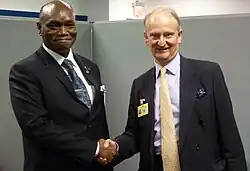 In 1998, Eyebe Ayissi became Inspector-General of the Services of the Ministry of Higher Education,[3] and he subsequently served as Inspector-General on Electoral Issues at the Ministry of Territorial Administration and Decentralisation.[3][4] He was appointed as Foreign Minister by President Paul Biya on September 7, 2007, replacing Jean-Marie Atangana Mebara,[2][4][5] and he was installed in office on September 10, 2007.[4]