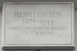 Ghéon died of cancer in a Paris clinic on 13 June 1944, a week after the Allied landing in Normandy and six days after the opening of his most recent play, Saint Gilles.