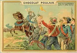 By the last decade of the Second Empire, and especially under the Third Republic, the figure of Henri IV and his white plume was once again very much in evidence. This revival can be linked to the development of school education, from Victor Duruy to Jules Ferry, which increased the number of history textbooks for children, featuring numerous images. The battle of Ivry and the white plume were thus inserted into a series of images building a common memory.[52]