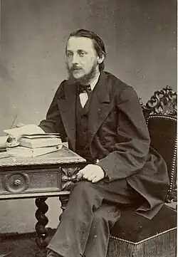 Van Heurck was born in Antwerp to Ferdinand Van Heurck and Marie-Elisabeth Balus. The family owned a paint a varnish factory in the Gezondstraat which was founded in 1787 and known as “De krasfabriek” (The Chalk Factory). Van Heurck went to the Jesuit school in Aalst and continued at the Royal Athenaeum. He spent some time at the Sint-Ignatius Institute in Leuven where he was influenced by Father Vincent Gautier to study diatoms.[1] Financially well off, he spent his time studying diatoms under the microscope, teaching himself biology. He had an X-ray machine set up at home and collected herbal medicines from around the world. He collaborated with the plant breeder and seed producer J.I. De Beucker (1827-1906) and they founded the Antwerp herbalist society. In 1861 he published a flora of Brabant and then went to Bonn to study under professor Hermann Schacht. In 1862 he was co-founder of the Royal Society of Botany in Belgium. Van Heurck married the botanist Jeanne Collignon (1841-1922) in 1863 against the family wishes as she came from a less wealthy background. Between 1866 andf 1870 he cooperated with Arthur Martinis and edited the exsiccata Herbier des plantes rares ou critiques de Belgique.[2] From 1867 he taught chemistry at the Antwerp Nijverheidsschool. From 1877 he became director and professor at the Antwerp Botanic Garden. He published two diatom books between 1880 and 1900 - “Synopsis des diatomées de Belgique” (1880–1885) and “Traité des diatomées” (1896) which brought him acclaim. In 1881, his home was among the first to have electric lighting. He also helped develop microscopy and wrote “Le microscope” (1865) which went into several editions (a 4th in 1891) and he helped promote some design innovations in microscope manufacturing. He made use of electric lighting for his microscope set up and produced photographs of specimens. He collected diatoms by making trips on his flat-bottom yacht, the Nautilus. Together with Albert Grunow van Heurck published the exsiccata series Types du synopsis de Diatomees de Belgique par le Dr. Henri Van Heurck. Déterminations, notes et diagnoses par M. A. Grunow (1882-1885).[3] His work contributed to a popularization of the study of diatoms and led to an interest in the documentation of the diatoms of the North Sea. This was achieved under the editorship of W. E. Baxter in 1896 with the publication of The Treatise on the Diatomaceae.[4][5][6][7][8]
