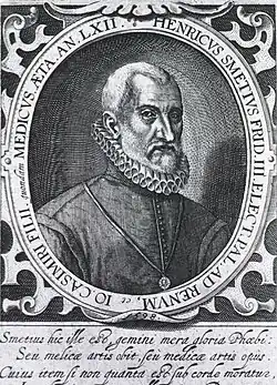 Henrich Smet (also Henricus Smetius Alostanus, Henricus Smetius a Leda, or Hendrik de Smet) (29 June 1535 or 1537—15 March 1614) Heidelberg was a physician and humanist scholar.