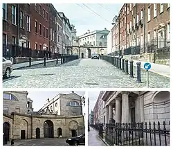 ![]() Clockwise, top to bottom: Looking northwest towards Gandon's Kings Inns; a detail from a neoclassical portico along the street; the entrance to Gandon's King's Inns building | |