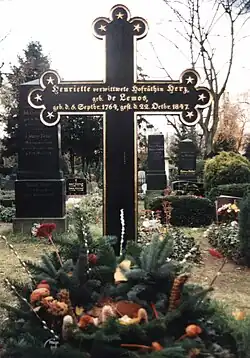 Alexander von Humboldt often visited and even received Hebrew lessons from Henriette. The theologian Friedrich Schleiermacher was another frequent visitor. After the death of her husband she came under the powerful influence of Schleiermacher and converted to Protestantism. Her grave is preserved in the Protestant Friedhof II der Jerusalems- und Neuen Kirchengemeinde (Cemetery No. II of the congregations of Jerusalem's Church and New Church) in Berlin-Kreuzberg, south of Hallesches Tor.