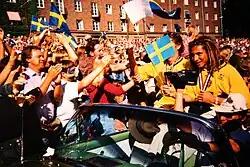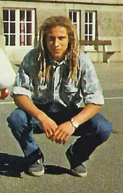 Edward Henrik Larsson[7] was born on 20 September 1971[8] in Helsingborg, Scania.[9] His father, Francisco Da Rocha, is Cape Verdean,[10] and his mother, Eva Larsson, is Swedish.[11] His parents, who never married and split up when he was 12,[11] decided that he should take his mother's surname because they felt it would make it easier for their son to be accepted in Sweden.[12] He credits his father for his love of football.[11] His father gave him a football when he was 16 months old and as a child, he was able to practice with brothers and friends on a large field near his home on the Närlunda estate in Helsingborg.[13][14] He has said of his school years, "I experienced some racism, because back then it was unusual to have a dark kid at school, I was one of the few."[15] He watched English football on television and his parents gave him a video of Pelé's life story, both of which inspired him.[15]