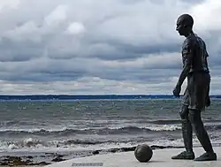 Celtic met Portuguese side Boavista in the semi-final.[88] Boavista took the advantage on away goals after a 1–1 draw in the first leg, in which Larsson scored the equaliser after missing a penalty.[89] In the second leg, Larsson struck for Celtic after a one-two with John Hartson with ten minutes remaining. The goal sent Celtic through to their first European final since 1970.[90] The final in Seville against Porto saw Larsson equalise twice with two headers, although Celtic eventually lost 3–2 after extra time.[74] Larsson also finished runner-up to Porto's Derlei in the competition's goalscoring charts. Larsson described the pain of the defeat as being the worst moment of his career, including his broken leg in 1999.[91] More disappointment followed, as Celtic finished runners-up to Rangers on the last day of the SPL season, by only a single goal on goal difference.[92] 2003 also saw Larsson voted as the Greatest Swedish Footballer of the Last 50 Years as part of the UEFA Jubilee Awards.[93] He also finished the season again the top SPL goalscorer with 28 goals from 35 games.[72][73]