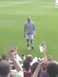 Larsson's next appearance at Old Trafford in fact came against United, the day after his loan with the club expired, as captain for the Europe XI team in the UEFA Celebration Match.[153][154] Larsson received a standing ovation from the home fans upon being substituted for Liverpool player Robbie Fowler.[155]