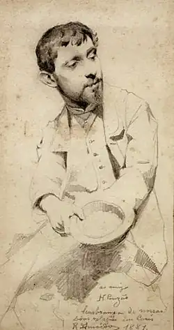 ![]() Henrique Pousão (1881), in a drawing by Rodolfo Amoedo | |